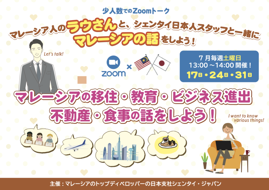 マレーシア人のラウさんとマレーシアの移住・教育・ビジネス・不動産の話をするオンラインイベント開催!マレーシア人スタッフと参加者の皆さまがマレーシアについて直接話せるオンラインイベントを定期開催いたします。