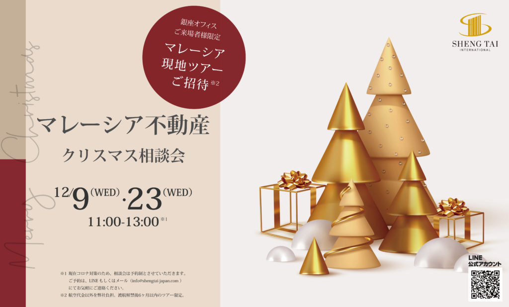 また12月のマレーシア不動産相談会にご参加いただいた全ての皆様にシェンタイ・ジャパンからのクリスマスプレゼントとしてマレーシア不動産ツアーにご招待いたします。