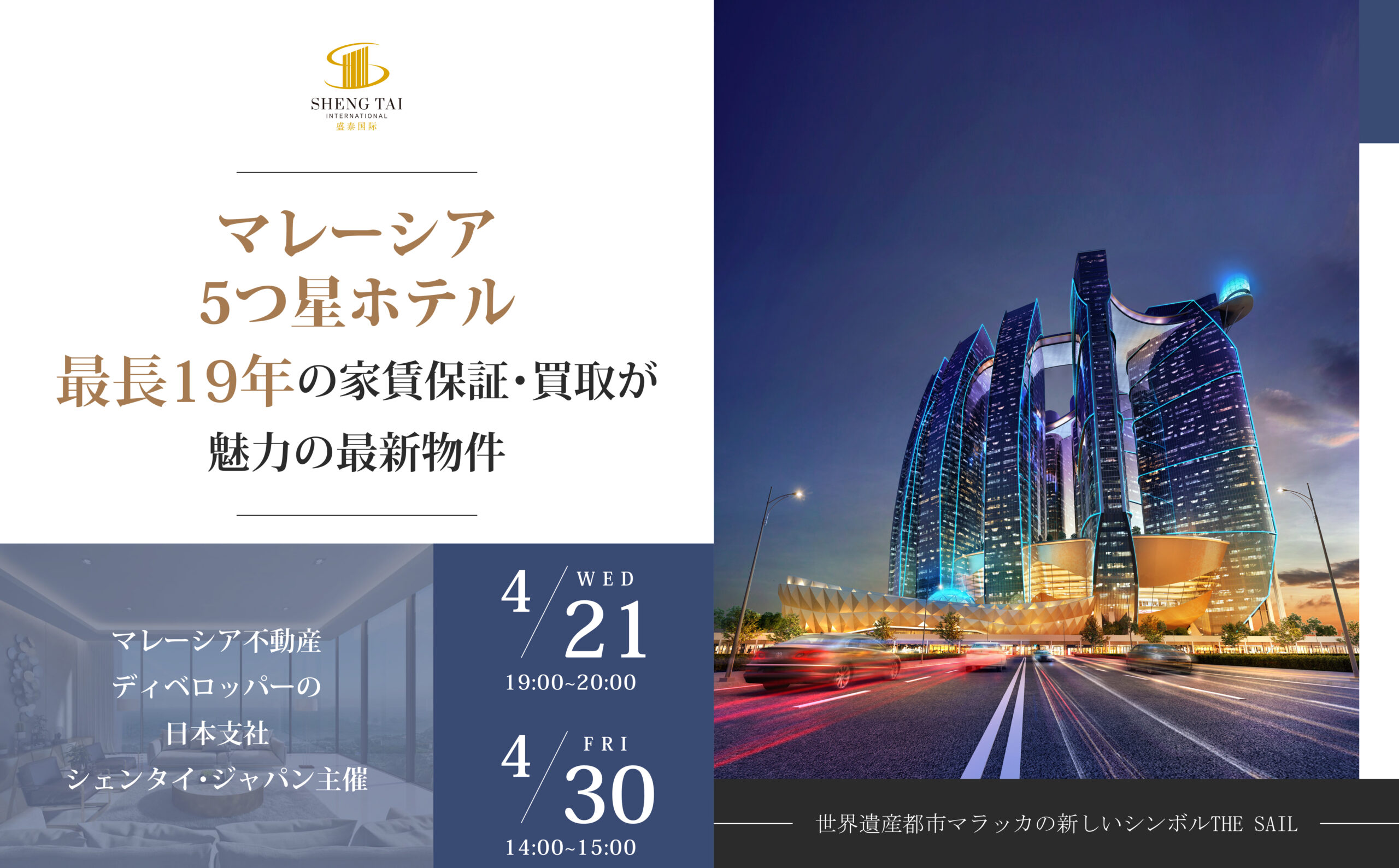 マレーシアの不動産開発会社Sheng Tai Internationalの日本支社シェンタイ・ジャパン主催のマレーシア不動産オンラインセミナーを4月も毎週開催いたします。